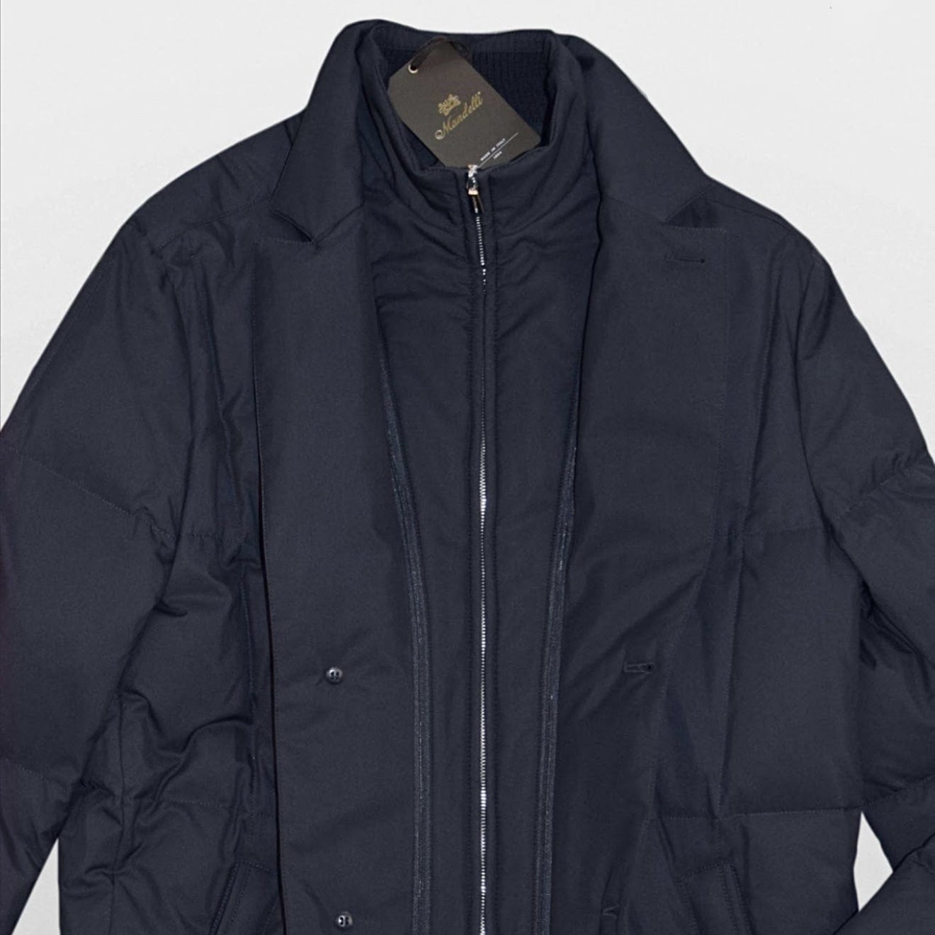 A refined long quilted puffer coat crafted from pure silk by ENRICO MANDELLI.