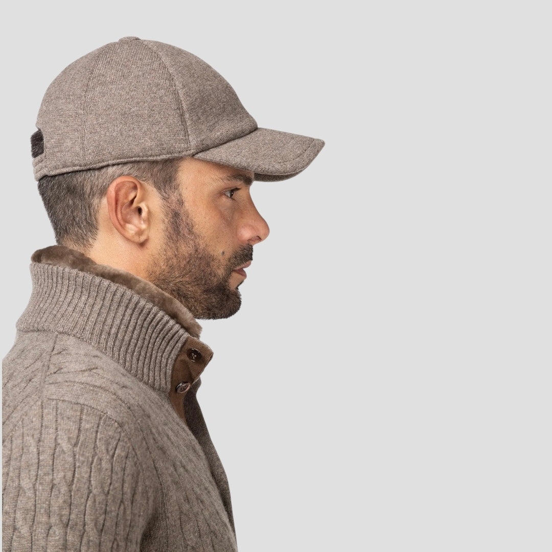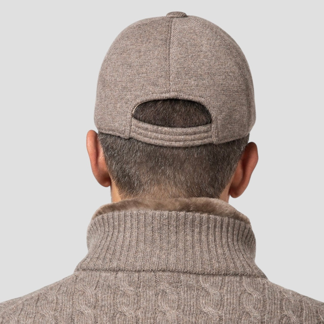 Бейсболка з козирком з дорогоцінного кашемірового трикотажу з ефектом тканини та трикотажною підкладкою.