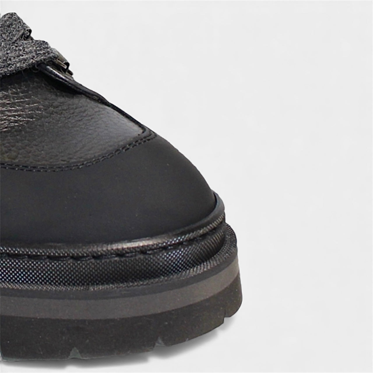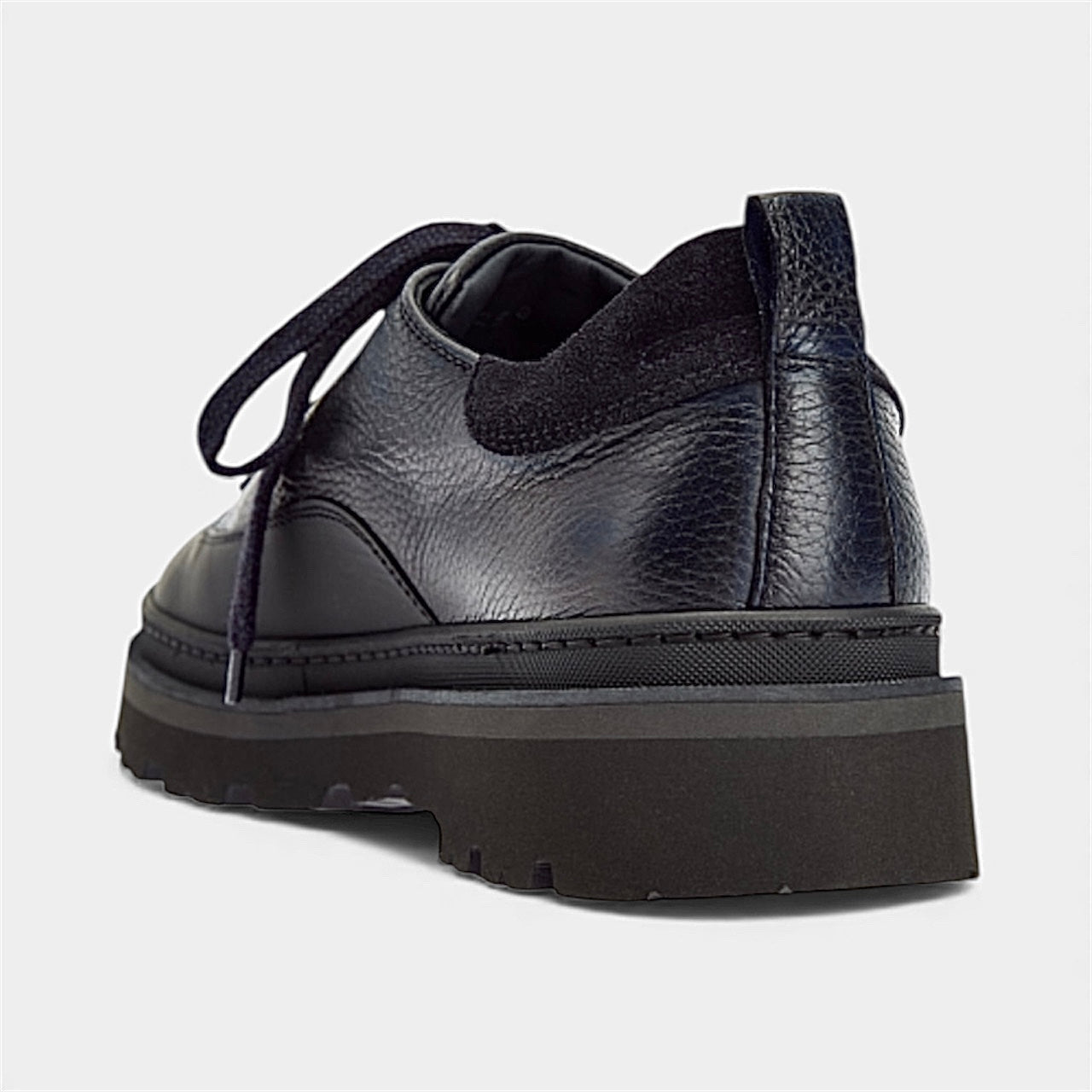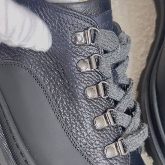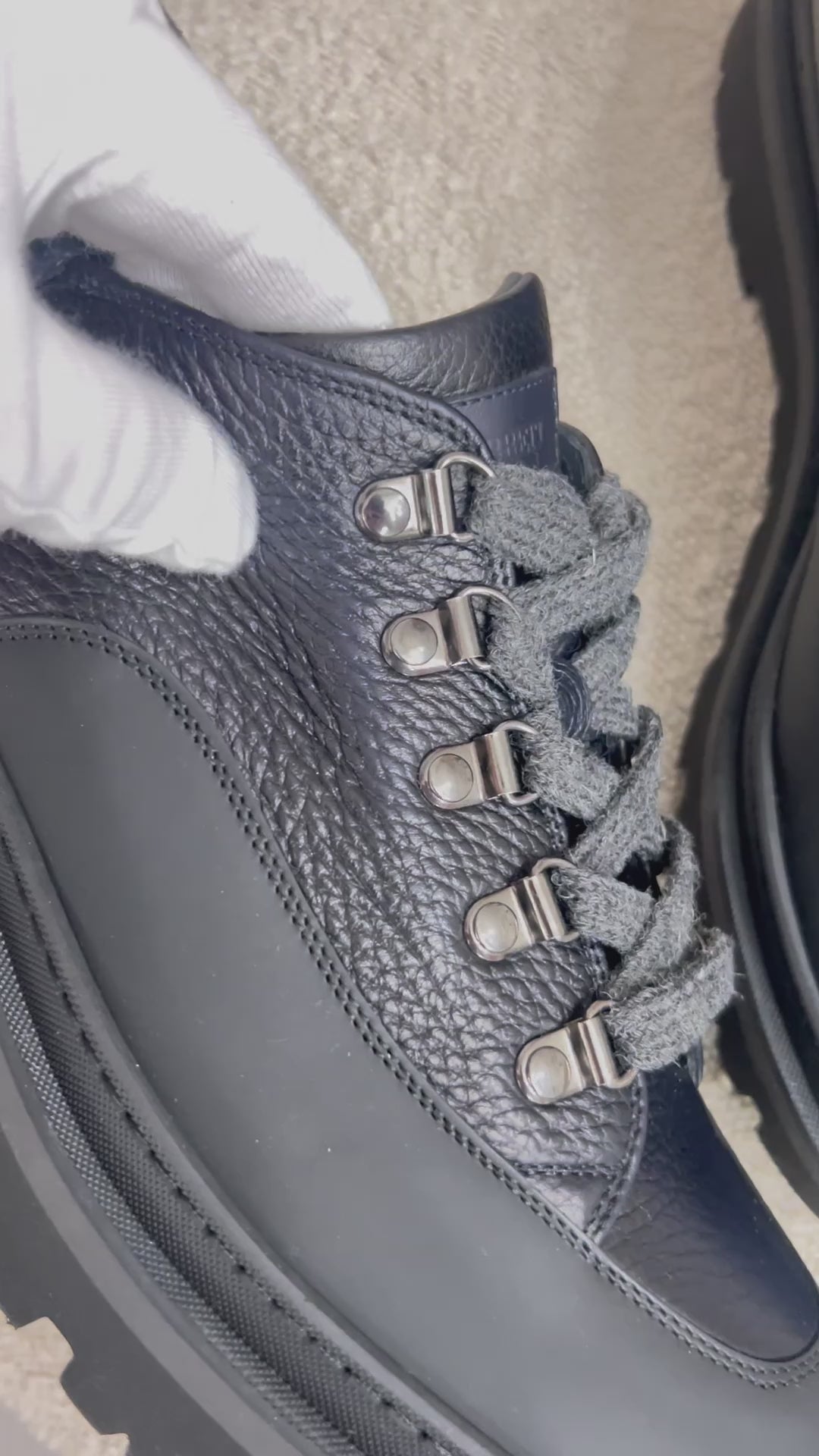 Чоловічі темно сині хайкери Blu Barrett з натуральної крупнозернистої оленьої шкіри. Модель створена для холодного сезону: рифлена неслизька підошва з сильним зчепленням, посилений мис і м’які кашемірові шнурки. Комфортні, теплі та преміальні за відчуттями.