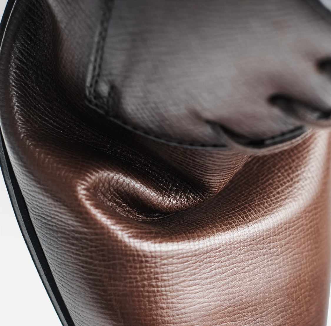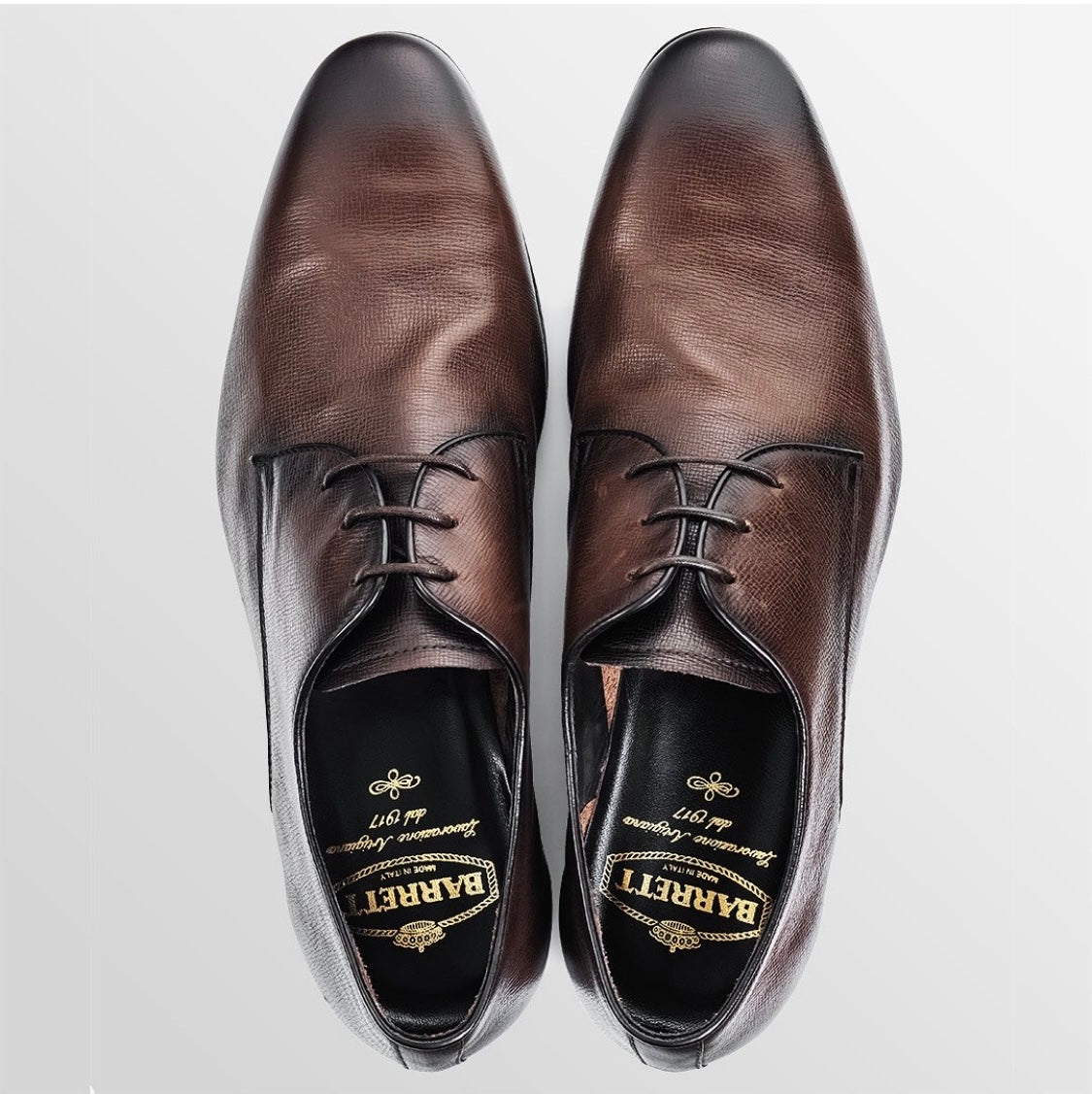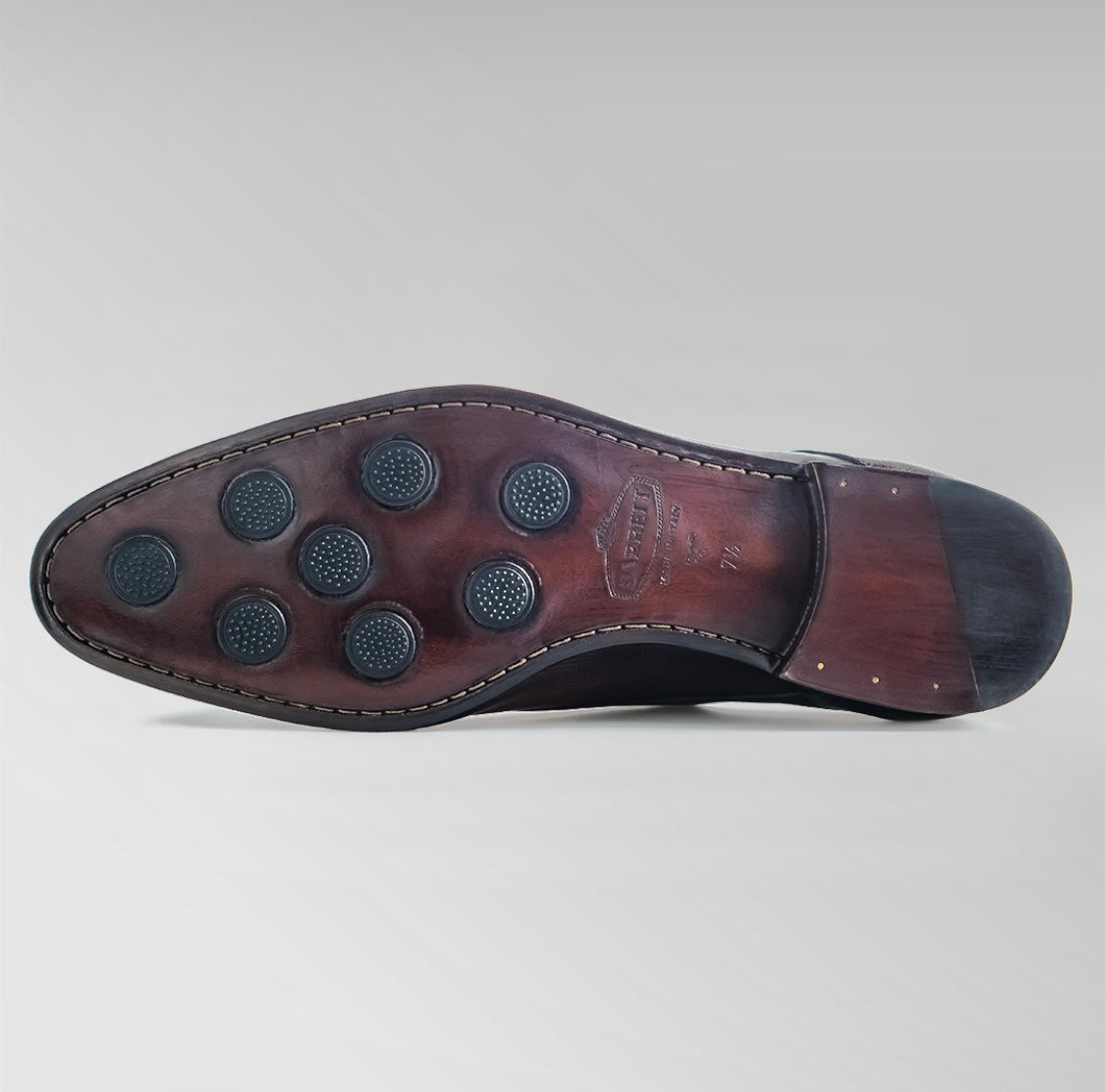 Ця модель — данина історії бренду Barrett, заснованого в 1917 році. Саме з такої шкіри, англійської телятини преміум-якості, почалася слава майстерні в Пармі. У процесі виробництва ручне патинування — технологія hand-aged , яка створює глибокий насичений колір з благородним градієнтом і зберігає природну текстуру шкіри.