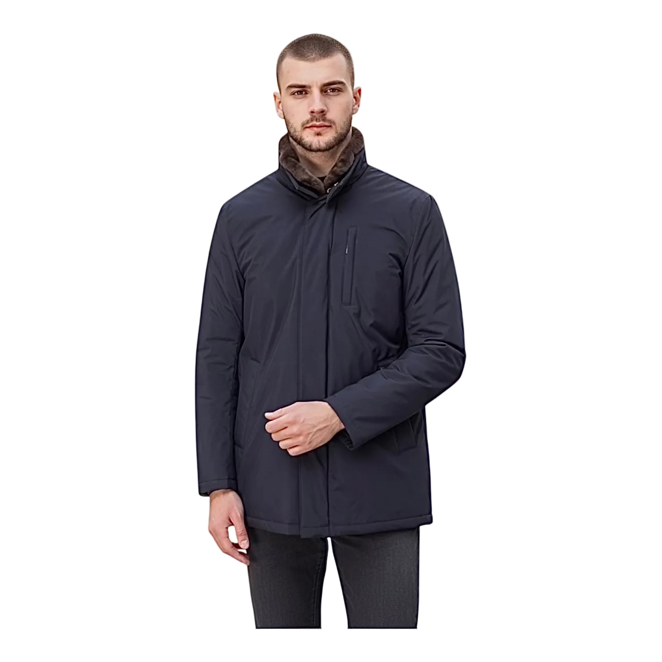 Куртка зимова LENOCI темно-синя з натуральним бобровим коміром та кашеміровою підкладкою Made in Italy