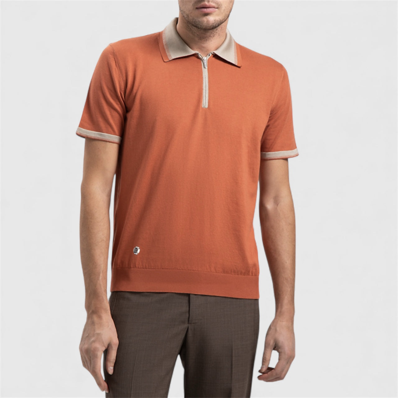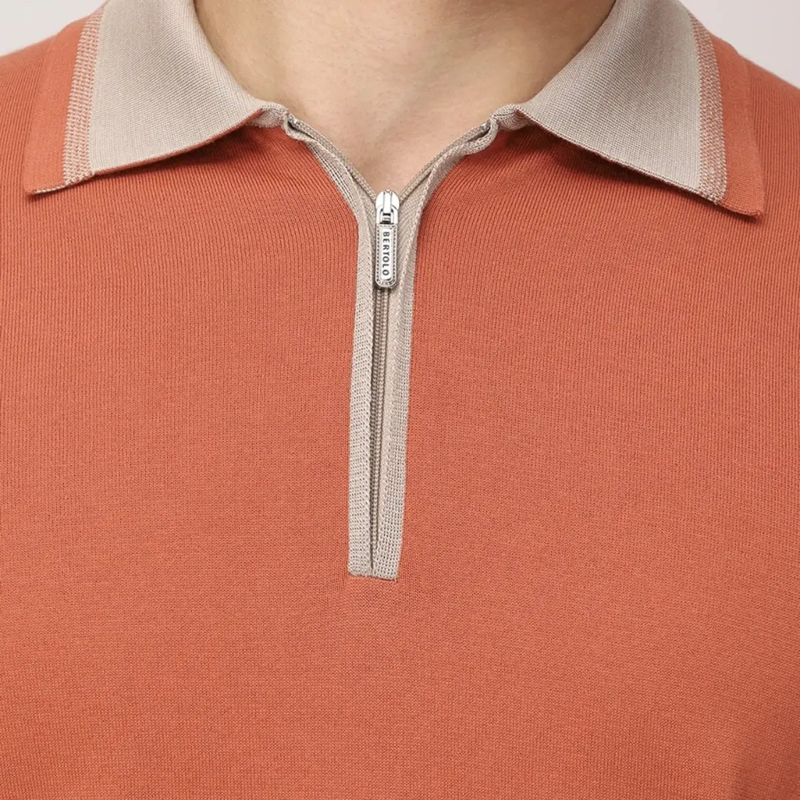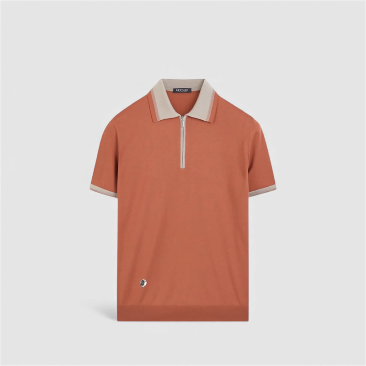 Поло з шовку та бавовни від Bertolo. Модель на блискавці, з короткими рукавами та контрастним оздобленням.