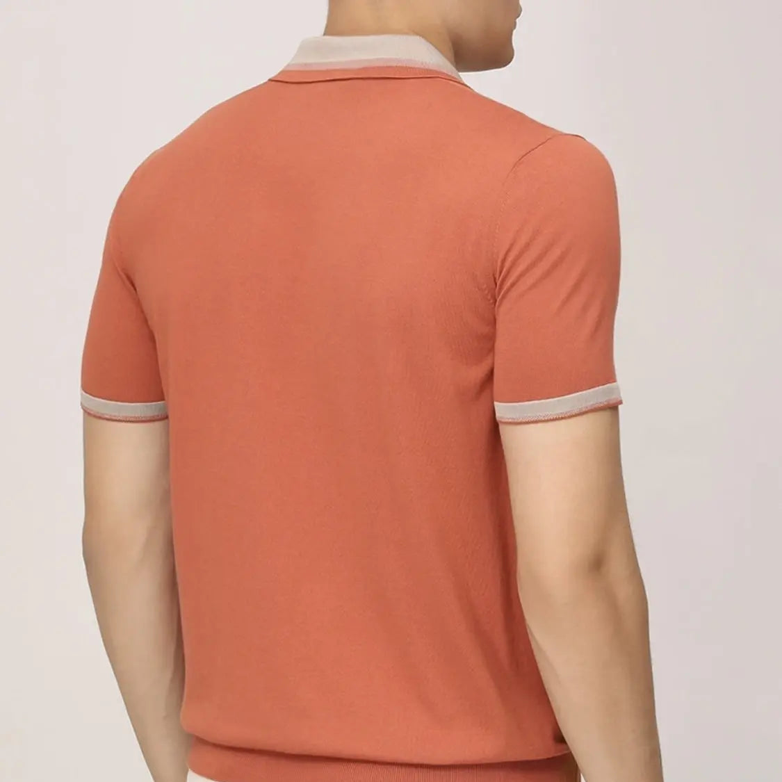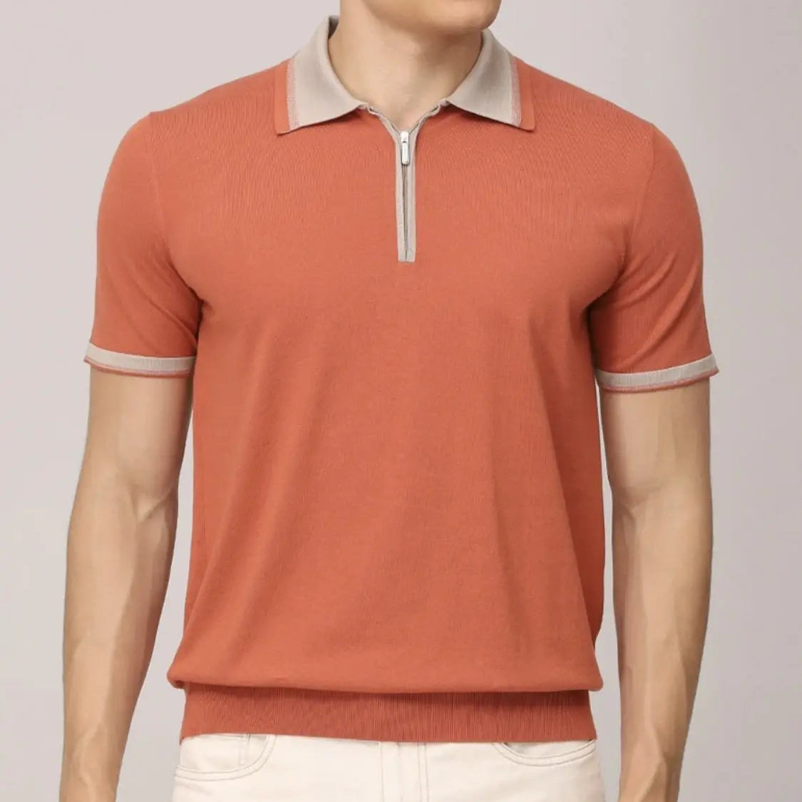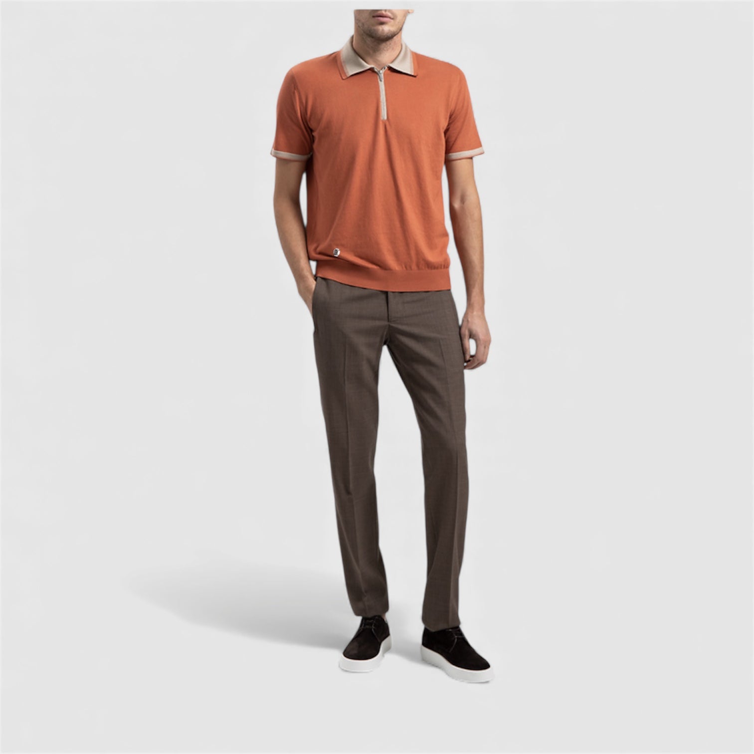 Поло з шовку та бавовни від Bertolo. Модель на блискавці, з короткими рукавами та контрастним оздобленням.