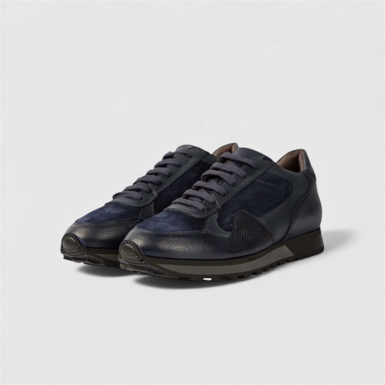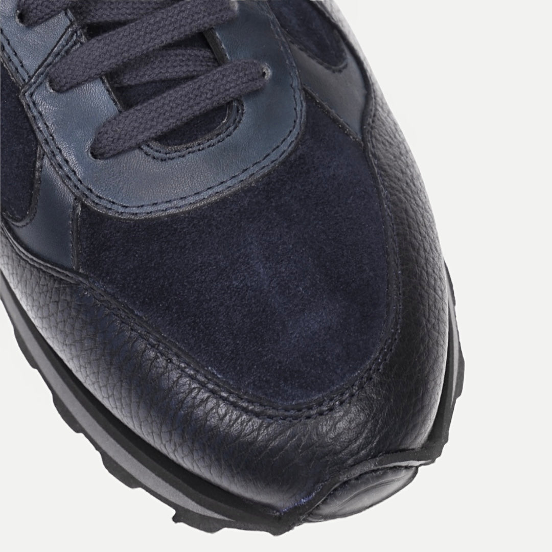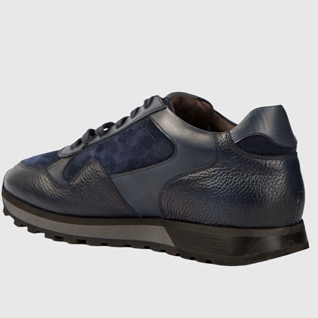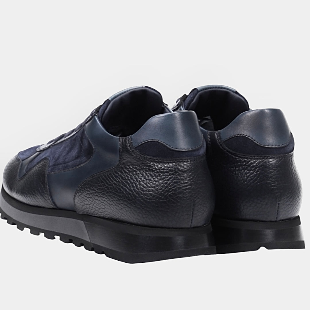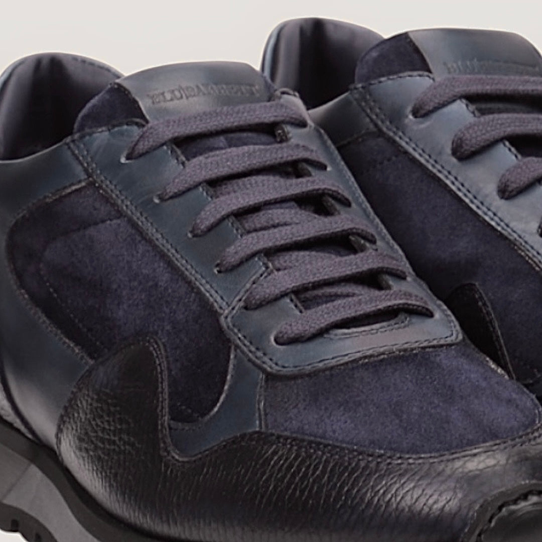 Темно-сині кросівки від BARRETT із трьох видів шкір: зі шкіри, пофарбованої вручну, шкіри оленя та високочесної замші велюр. Всередині м'яка натуральна шкіра